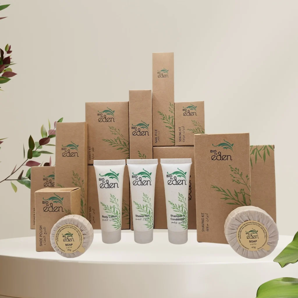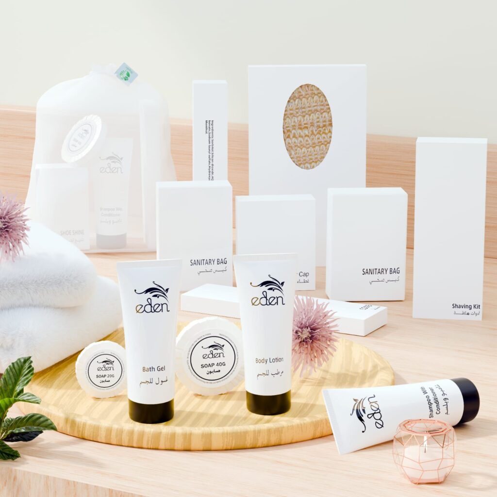 Our Eden Collection brings together clean formulations and biodegradable packaging to offer guests a premium, earth-conscious amenity experience. Designed for hotels that value both elegance and environmental responsibility.