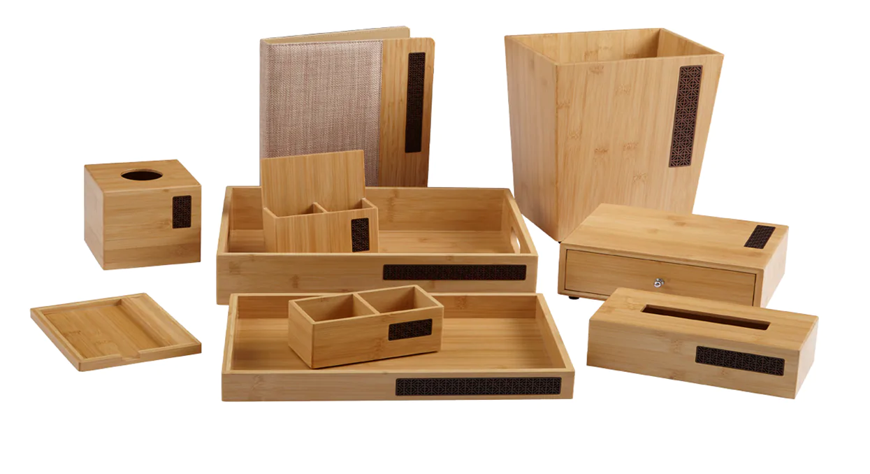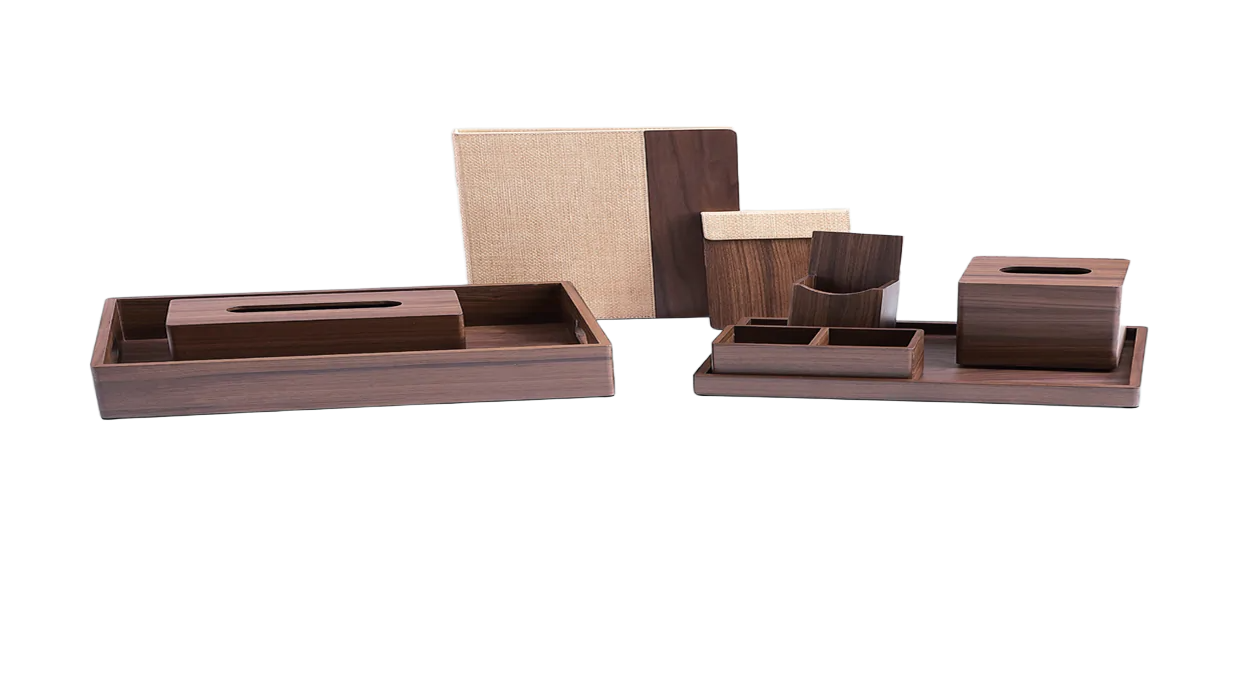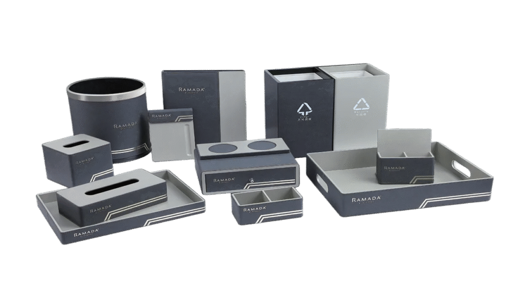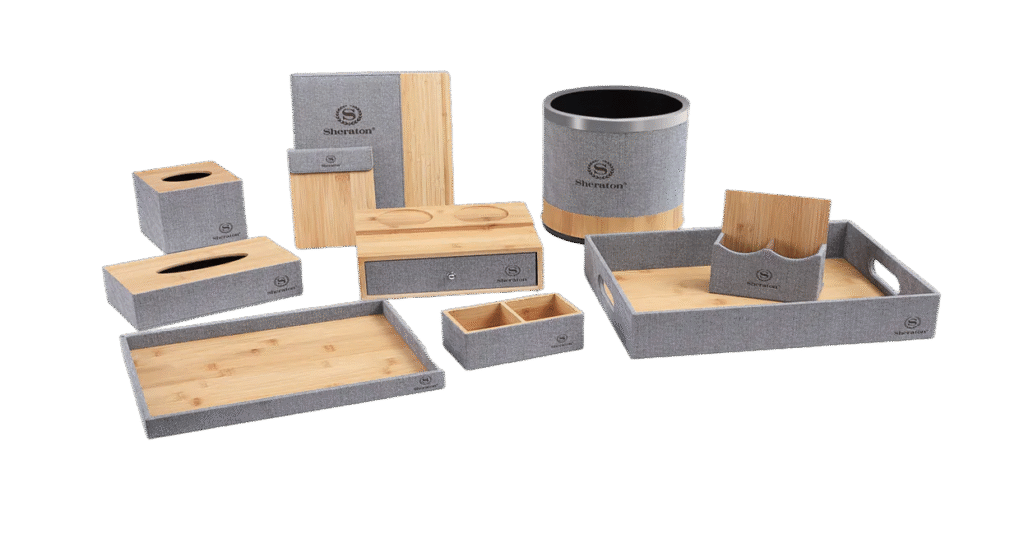 Elevate every detail of the guest experience with thoughtfully designed in-room accessories. From full leather to mixed-material combinations of bamboo and wood, our collection blends natural textures with timeless sophistication — offering both functionality and style tailored for luxury hospitality environments.