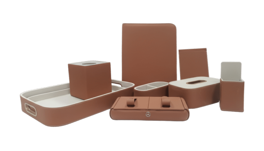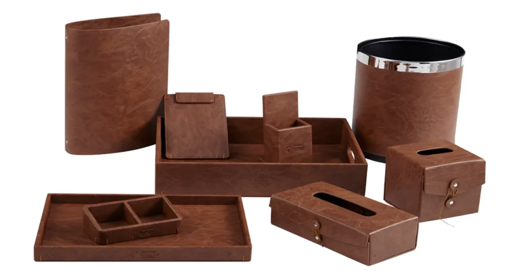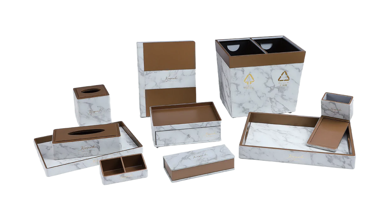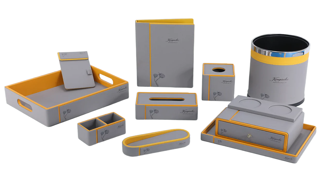 Experience timeless luxury with our full leather accessory range — crafted to deliver sophistication, durability, and a premium tactile finish. From tissue boxes to amenity trays and guest service folders, each piece adds refined elegance to any room setup.