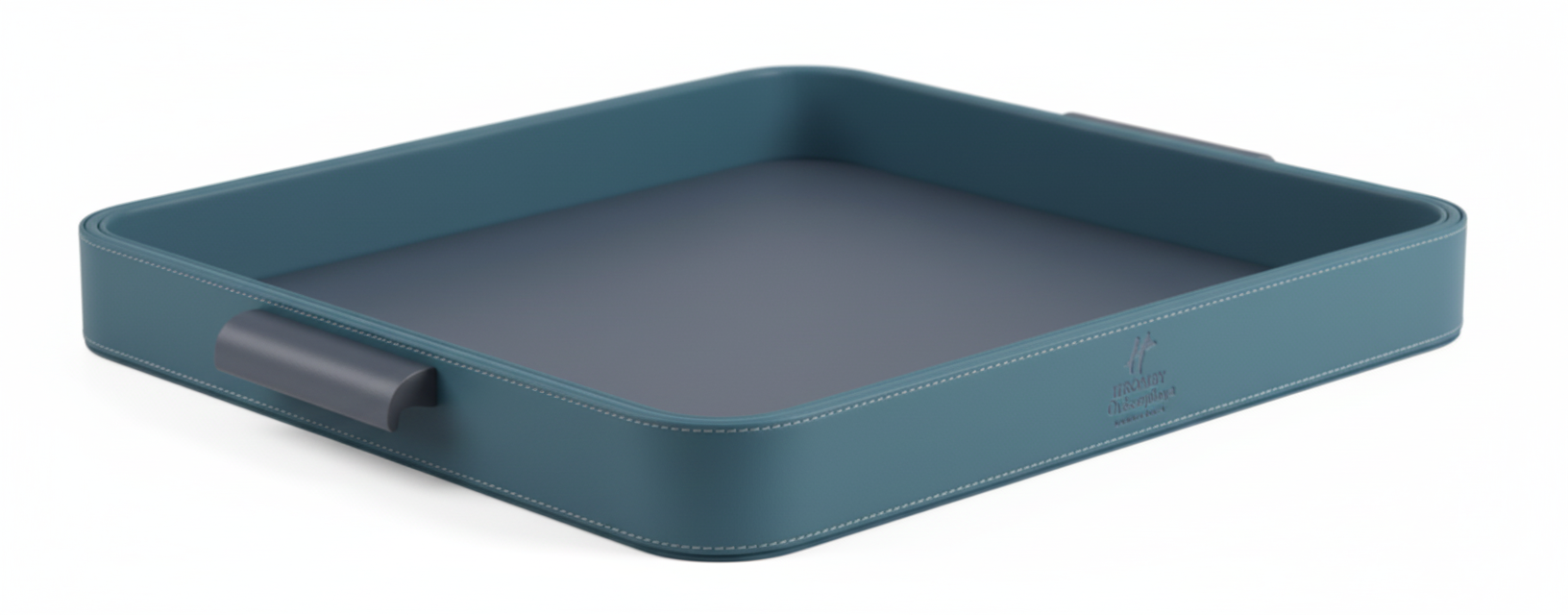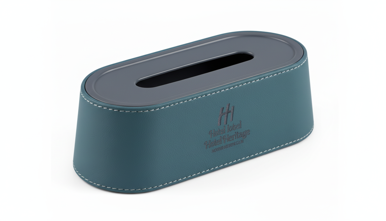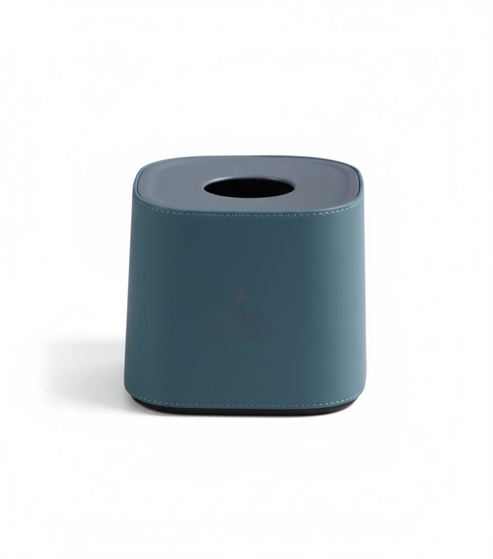 The Light Blue Series offers elegant leather hotel accessories in a soft, calming blue tone. This collection features items such as waste bins, guest folders, trays, tissue holders, and desk accessories, all designed to combine functionality with style. The gentle blue color adds a fresh and welcoming touch to guest rooms, lobbies, and office spaces. Crafted with durable leather, these accessories are built for long-lasting use while maintaining a sophisticated and polished appearance.