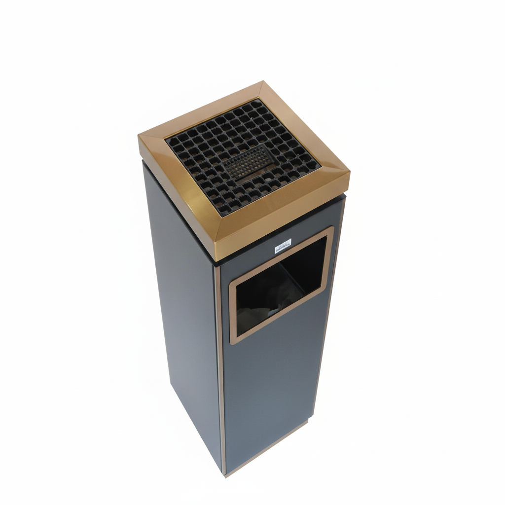 The Goldie Square Ashtray Bin is a stylish and practical waste management solution designed for modern commercial spaces. Featuring a premium rose gold and black finish, it adds a touch of elegance while delivering efficient functionality. The built-in ashtray at the top provides a dedicated spot for cigarette disposal, keeping surroundings clean and organized—perfect for smoking zones in hotels, offices, restaurants, malls, and public areas.