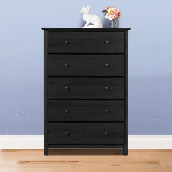 Be the first to review “Maples 5-Drawer Chest of Drawers – Modern Mid-Century Storage Unit with Walnut Finish (Light Brown, Dark Brown & Black)” Cancel reply