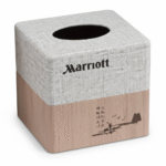 The Maples Jungle Classic Rounded Waste Bin features eco faux leather, natural linen, and light walnut wood laminate, combining rustic charm with practical functionality for luxury hotel rooms, suites, or lobbies. Designed with a rounded silhouette, it keeps spaces tidy while adding a natural, minimal, and eco-inspired touch to the décor.