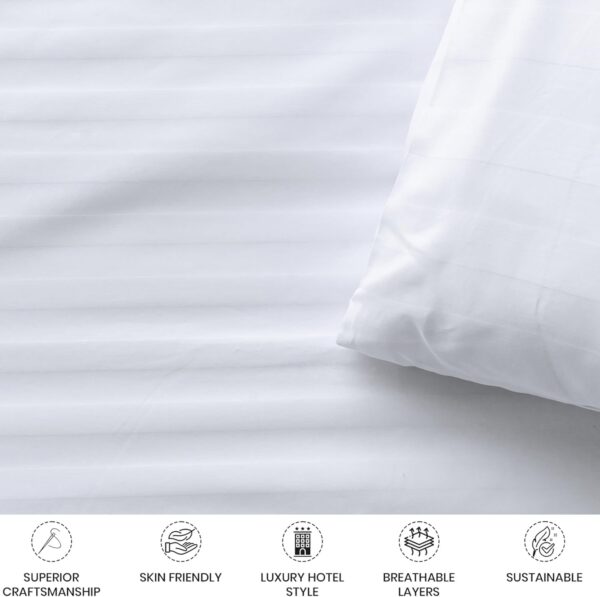 Description: The Maples Premium Quality Stripe 100% Cotton Bedding Collection offers a luxurious sleep experience. It is available in various sizes and features sophisticated stripe options in different stripe widths.