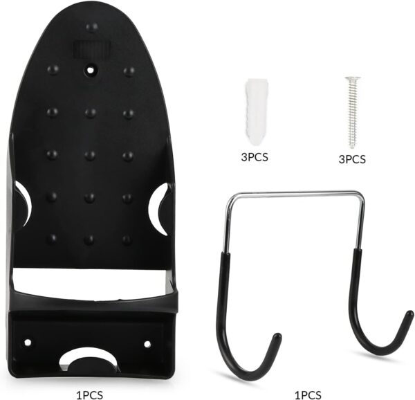 Its wall-mounted design allows you to safely store a hot, unplugged iron immediately after use without risk of melting or damage. The strong steel wire hooks easily support T-leg ironing boards or other lightweight items, ensuring stability and long-lasting reliability.