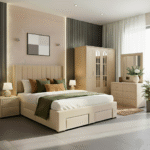 Be the first to review “Maples 5-Piece Modern Bedroom Set for Hotels & Homes – Triangle-Stitched Bed, 2 Bedsides, Dresser & 4-Door Wardrobe (Customizable)” Cancel reply